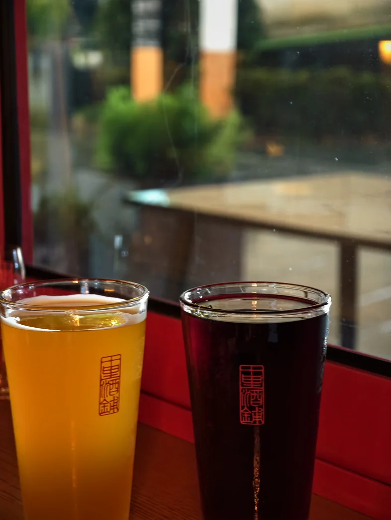 金黄的浑浊IPA带着绵密泡沫,深紫色的特调像把夜空装进了杯子。我们坐在窗边,看外面灯笼暖光,碰杯时轻轻说了声“新年快乐”。原来成年人的快乐,就是可以放心享受恰到好处的松弛。