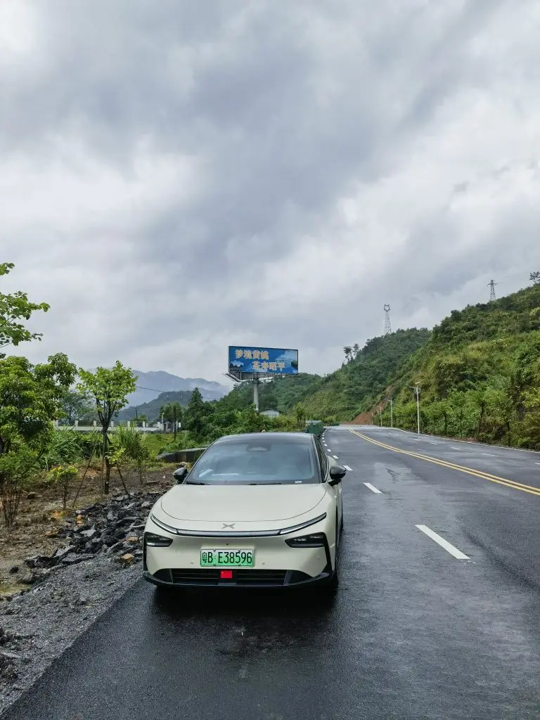 贵州山道上,刚买的P7+验证一下走烂路的能力。