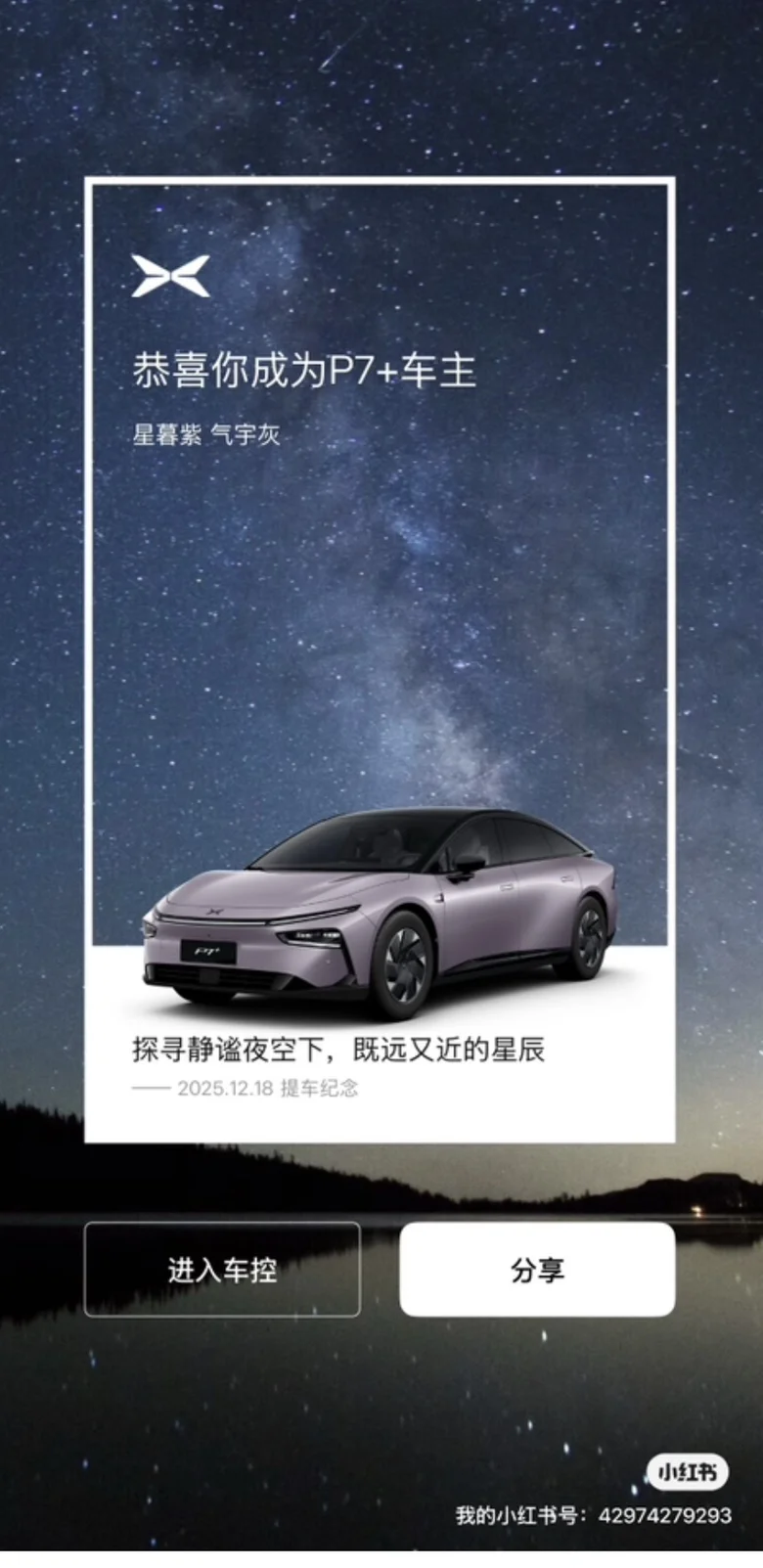 #我的提车作业# 终于把心心念念的星暮紫小鹏P7+开回了家。从在社区论坛上看到鹏友们的分享,到如今亲自握住方向盘,这份期待终于落地为实。