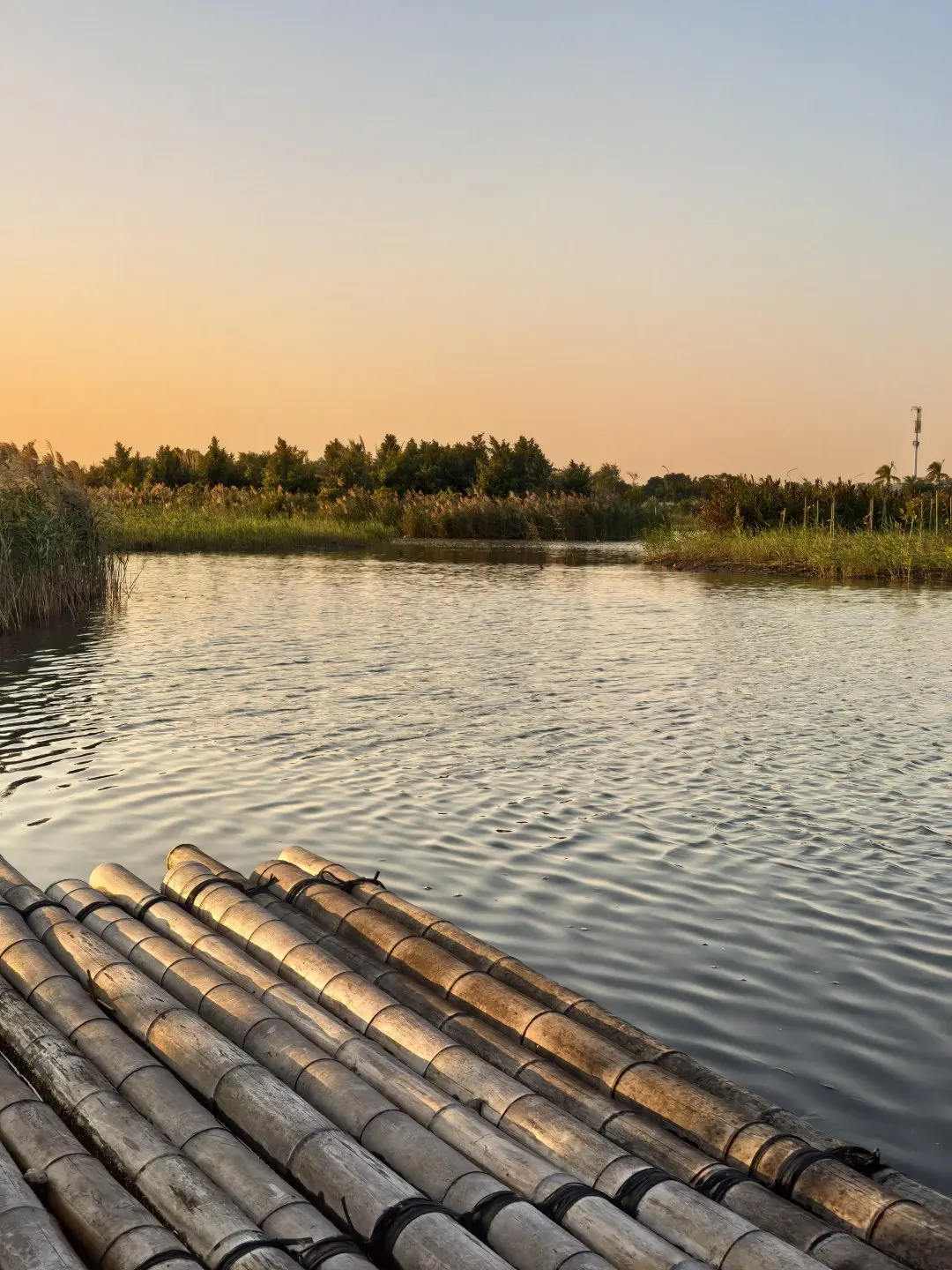 前两日赶景点的脚步还没缓过来,踩上湿地木栈道的瞬间,节奏突然就慢了,没走两步先撞见入口处的竹筏。