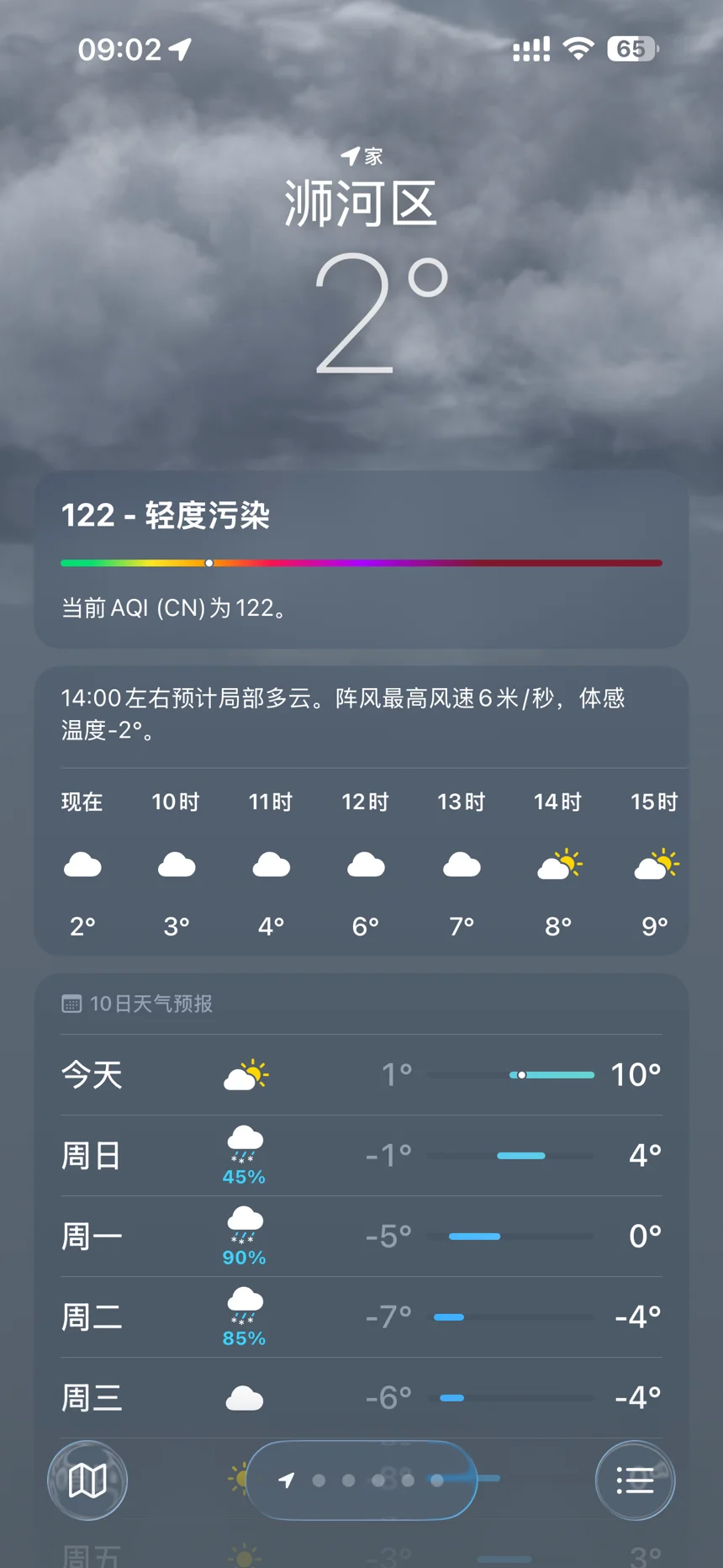 🌡️ 室外温度:2℃(体感-2℃)