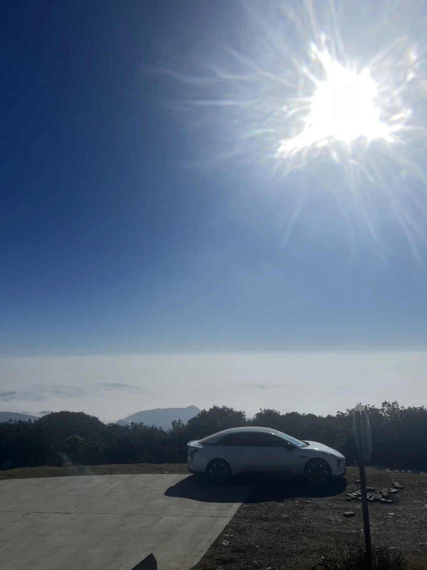 在 2025 的最后一个月,我们从 2000 海拔的地方特地来到了海拔 3000 米的气象站来看云海,来的时候有点晚了,但是云海还是有的,风吹着云跑,山顶上有结冰了,小鹏 M03 的能耗直接提升到了 40 多,下山的时候就反向充电了,充回来百分之五,真是科技改变生活,在这个 2025 的结尾画上了一个完美的句号。巨好。谢谢小鹏 MONA M03 带我走过的这些祖国的大好河山。
