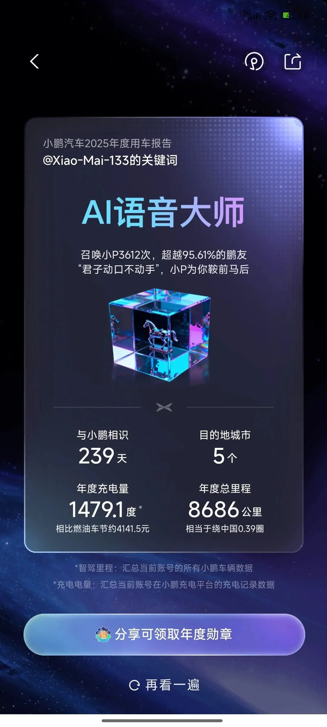 我们提车G9已7个月,用于上班通勤、短途游、长途游,已走过了17个城市,里程接近9000KM,辅助驾驶1600KM,占比30%……我的智能标签是“AI语音大师”,真的是疯狂跟聪明的小P互动阿……以至我的驾驶理念是“能动口的绝不不动手”。