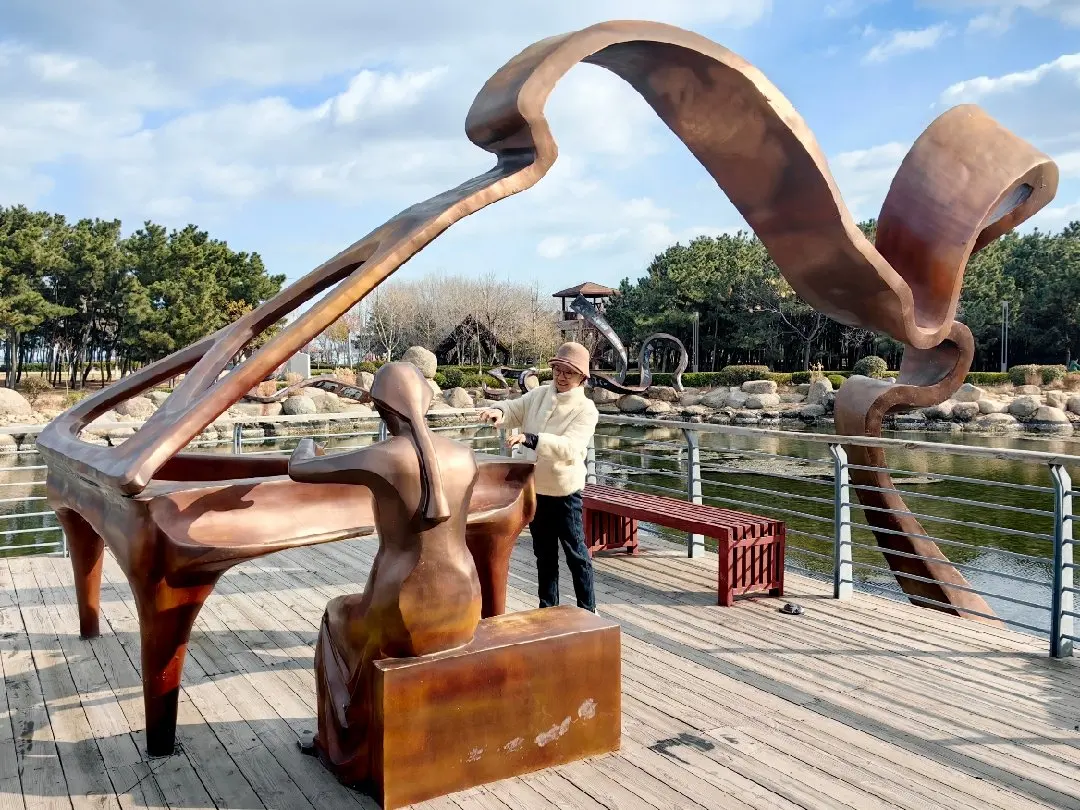 蓝蓝的天上白云飘,碧绿的海水楼阁绕。海上公园,海边琼楼玉阁,醉了游子的心。