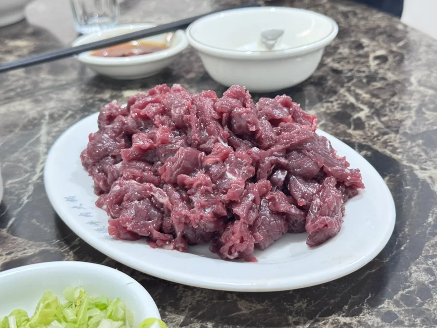 2️⃣ 潮汕牛肉火锅:开了3小时车就为这一口鲜吊龙,现切的牛肉在滚汤里涮8秒就捞起,蘸上沙茶酱,满嘴都是满足感。