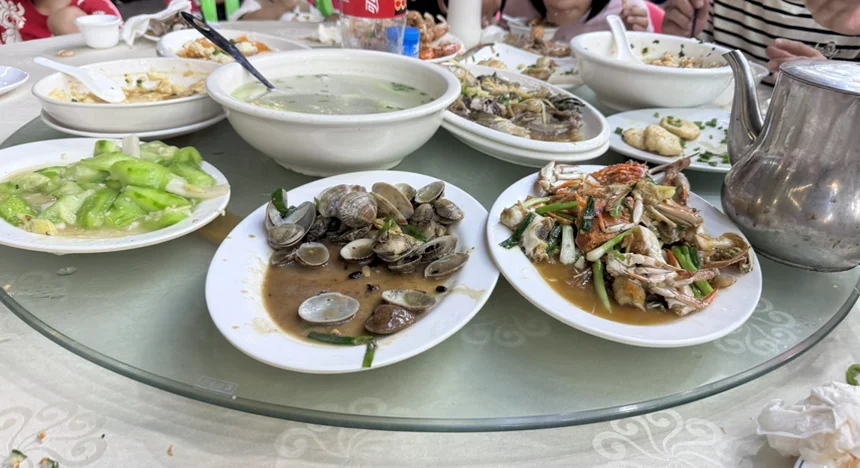 4️⃣ 阳江海边:清晨赶海挖了半桶花蛤,中午就在沙滩边找了家大排档,白灼虾、蒜蓉粉丝蒸扇贝,鲜到眉毛掉下来。