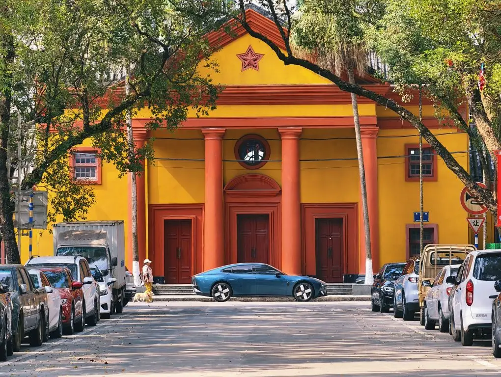 ☕ 盲点了桂馥栀秋,桂花的清香混着醇厚牛乳,一口下去暖乎乎的,完全是平替版宝藏茶饮~ 坐在广场的树荫下喝咖啡,吹着山间的微风,听着本地人的闲谈,慢悠悠的节奏太舒服了,感觉所有疲惫都被吹散了。对了,别忘了顺路打卡网红景点~三月三广场旁边的这栋黄色小楼,与p车太搭了,美美出镜。