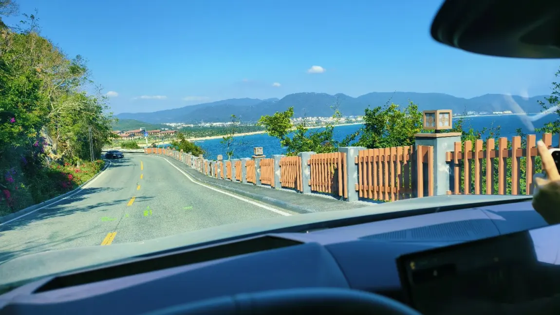 最最期待的太阳湾公路终于安排上!一侧是苍翠青山,一侧是湛蓝大海,开着小P在S型弯道上行驶,随手一拍都是公路大片~ 导航到柏悦酒店停车场,从左侧通道就能免费进入太阳湾沙滩,这里的玻璃海真的名不虚传!海水清透得像果冻,蓝得发亮,带着小P打卡海边,连车辙印都透着浪漫~