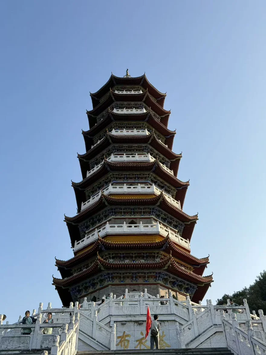 秋日,我登顶布衣塔。沿着石阶拾级而上,塔身的飞檐翘角在蓝天映衬下格外古朴。站在塔顶极目远眺,层林尽染的山峦与远处的城市轮廓相映成趣,千年古塔的厚重与眼前的鲜活烟火在此刻交融。