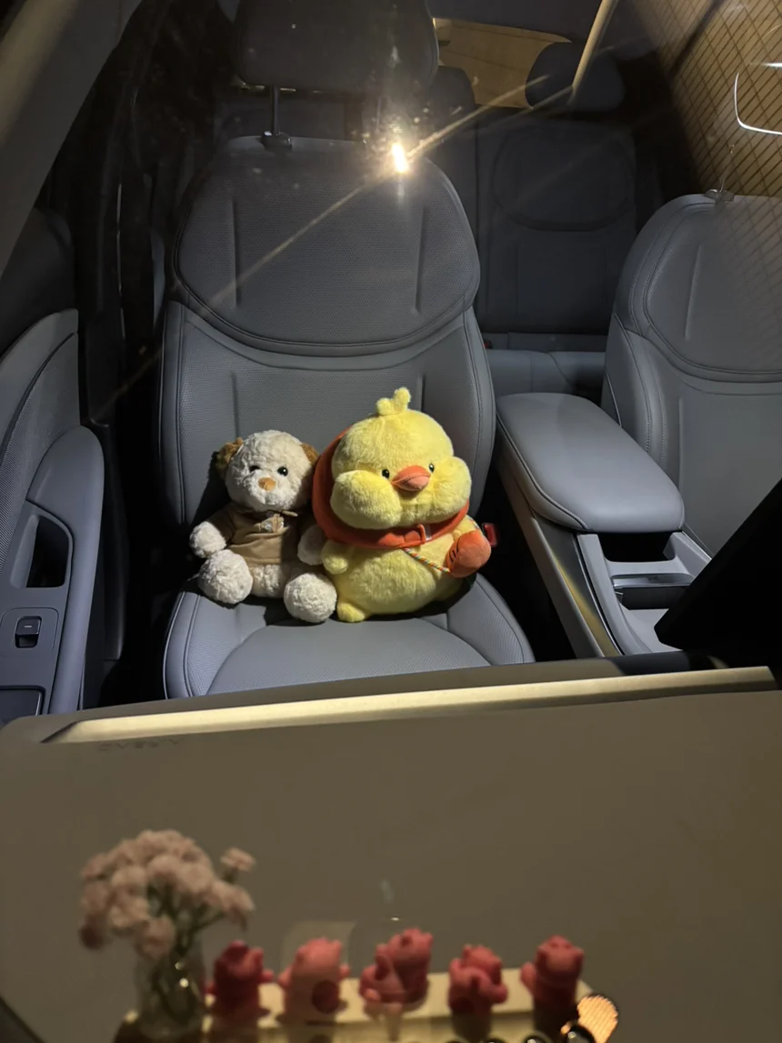 提车盲盒抽到这只小熊,软绵绵的,后来成了我每次开车的“小乘客”。