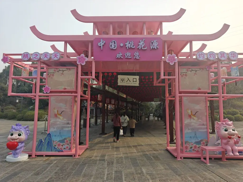 #新年首次出行# 长沙出发驾驶小鹏P7+开启新年自驾之旅,目的地是陶渊明笔下的世外桃源——常德桃花源景区。景区入口的粉色牌楼与“桃之夭夭”的装饰,瞬间将人带入浪漫意境。更惊喜的是,仅需69元套票,就能免费体验地道的杀猪宴,热气腾腾的土猪肉、鲜香的血旺,配上农家小菜,年味十足。