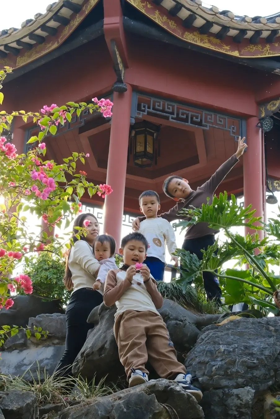刚进门就被“中华第一牌坊”震撼到,88米宽的巨型石牌坊,雕龙画凤超精致,阳光下拍照自带国风滤镜📸 带娃登上青云塔,居然偶遇一群不怕人的小松鼠,窜来窜去的样子把小朋友们逗得超开心,登顶还能俯瞰全园湖光山色。