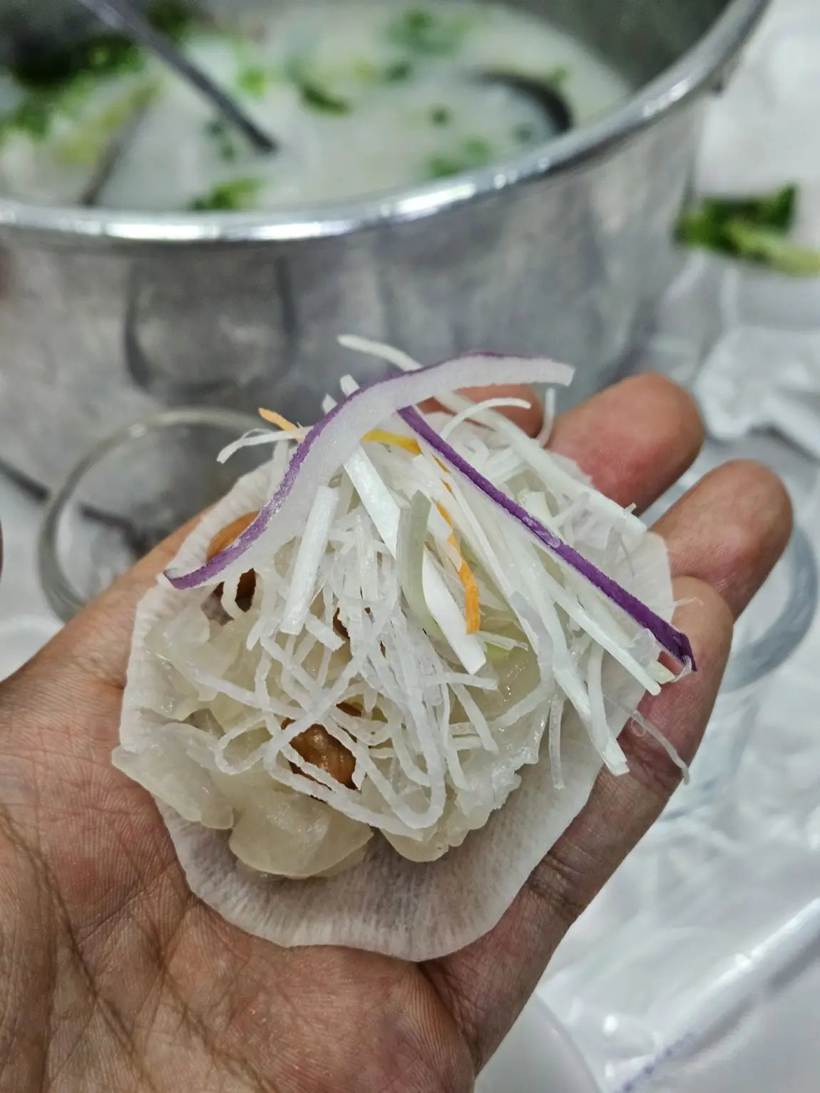 ✅顺德鱼生:薄切的鱼肉晶莹剔透,搭配蒜片、姜丝、炸芋丝等十几种配料,拌匀后冰凉爽滑,鲜到掉眉毛!