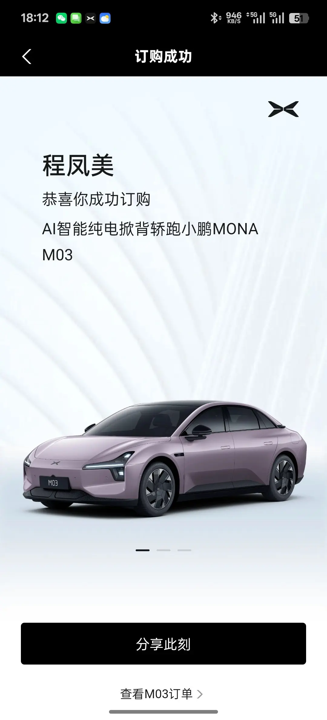 从外地拼搏回到家里一直在看车,只考虑纯电车,我上班的路程不是很远,考虑电车比较适合我,充电一个月也就一两百。说实话预算有限,所以也是比较谨慎的选择,近一个月就去试驾了零跑,名爵,海豹也试过很多款车,但要么是续航不够,要么是没有智驾,其余的不是没有自动泊车就是360影像!而小鹏m03满足我全部的需求,除了底盘不好,其他的都很棒。于是我很快的联系销售,销售二话不说开着试驾车来找我,让我去试驾,并在城市路段让我去体验智驾。对于我这个只开过油车的人,智能驾驶给我带来了很大的震撼,自动泊车,自动变道,自动超车。我试驾的时候还是在下班高峰期,所以智能驾驶对上班族不要太好了。