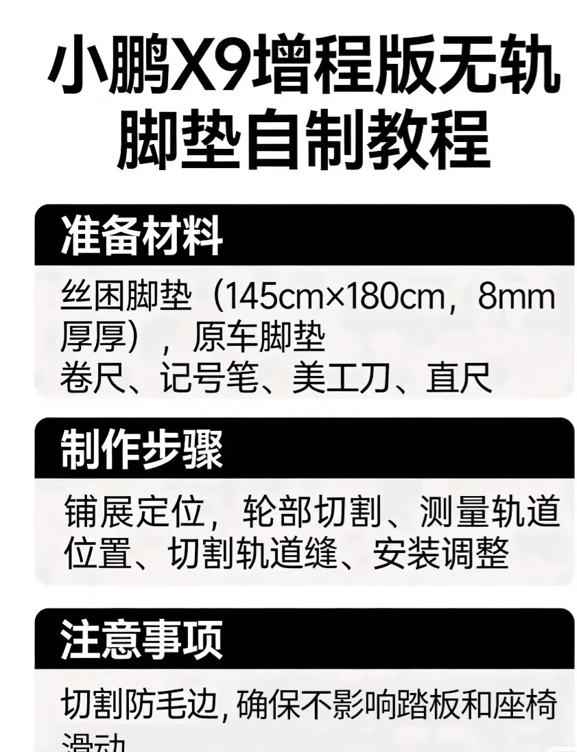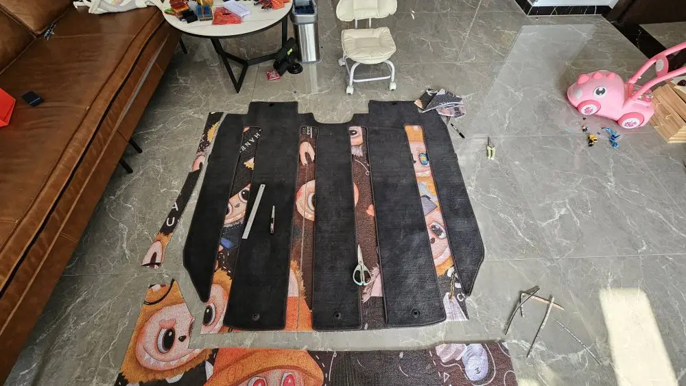 从纯电X9换到了X9超级增程,以前一直用的原车自带的羊绒脚垫,脚感特别好,但就是不耐脏,现在换车以后,成了簇绒脚垫,脚感上有了些许退步,自然萌发了换脚垫的想法。在网上看了很久也没有心仪的脚垫,无意间刷到有鹏友diy脚垫,立马有样学样,做了一个拉布布的。现在把一些小心得分享给大家: