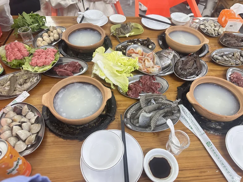 又去打卡了粥底火锅,鲜美的食材在米汤里涮过,暖到了骨子里。