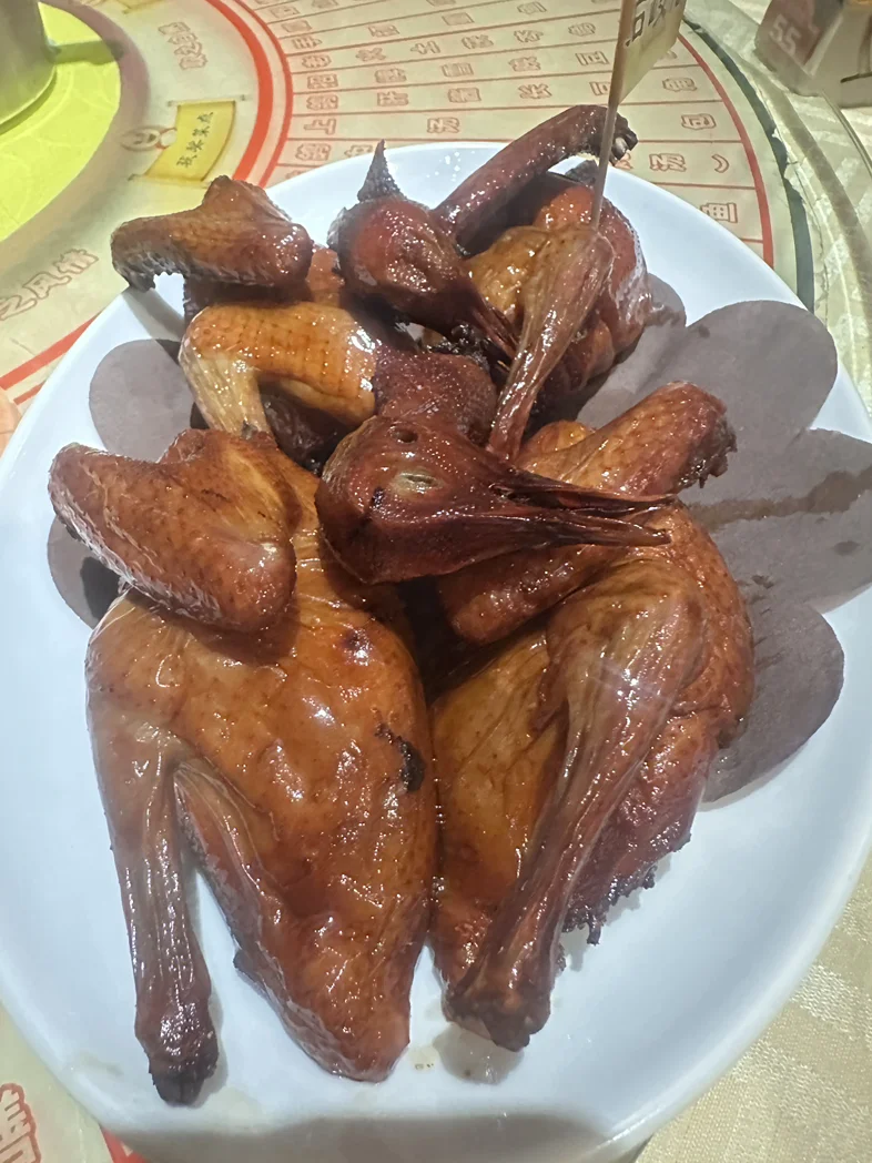 换完胎继续出发,抵达中山后,直奔老字号吃皮脆肉嫩的乳鸽