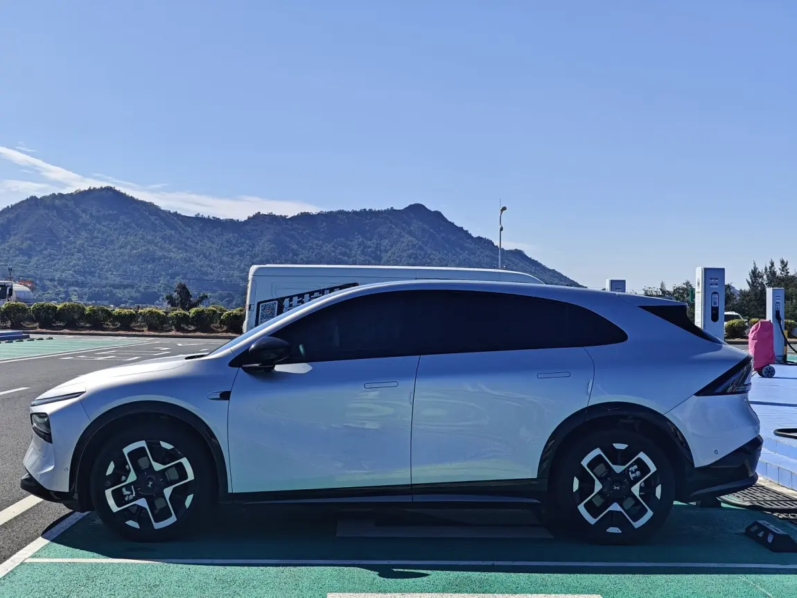 出行前小p会自检胎压等车辆状态,在家充满电后我们选择了早上七点出发,全程约900公里,中途充电和休息推荐长沙湾服务区,服务区特别大,充电桩很多且功率大,搭配上小鹏G7 702Km的超长续航和超快的800v充电速度,一路也没有续航焦虑,上个厕所二十分钟的功夫就差不多充满了,还能带小朋友在服务区打卡拍照游玩。