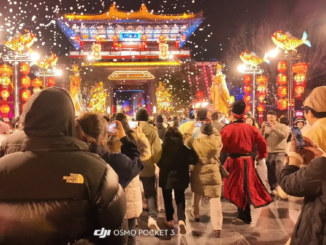 -穿着厚厚羽绒服的游客们挤在一块儿,每个人手里不是举着手机拍照,就是攥着刚刚得到的大宋交子,呼出的白气和灯光混在一起,暖融融的。