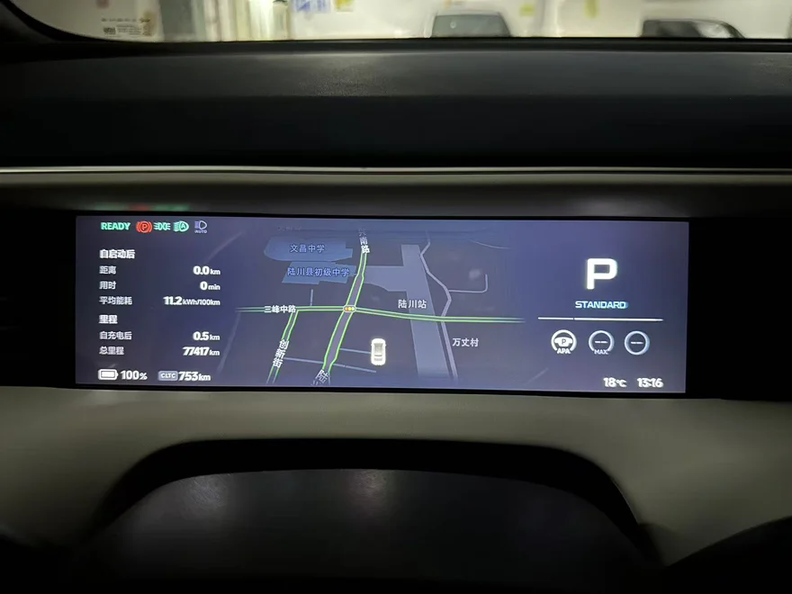 出发前一天就把电充满了,因为是18寸轮毂,所以满电的CLTC是755公里续航,因为冲完电开回家里地库车位,加上出发前满载5人都有行李,所以出发前CLTC电量剩余753公里。