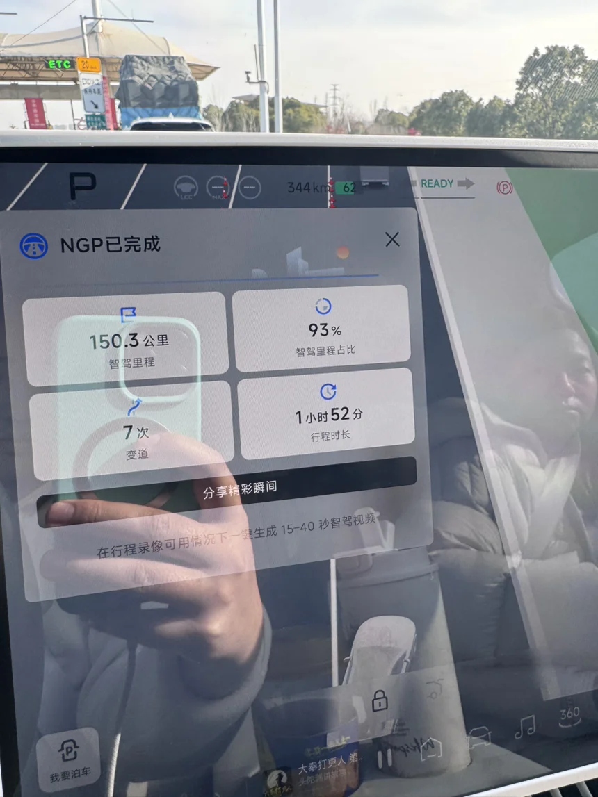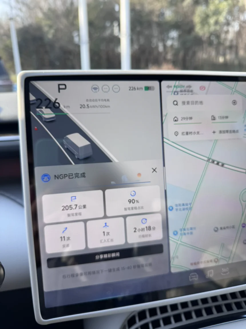开了两段NGP,一次150.3公里,一次205.7公里,智驾占比都
