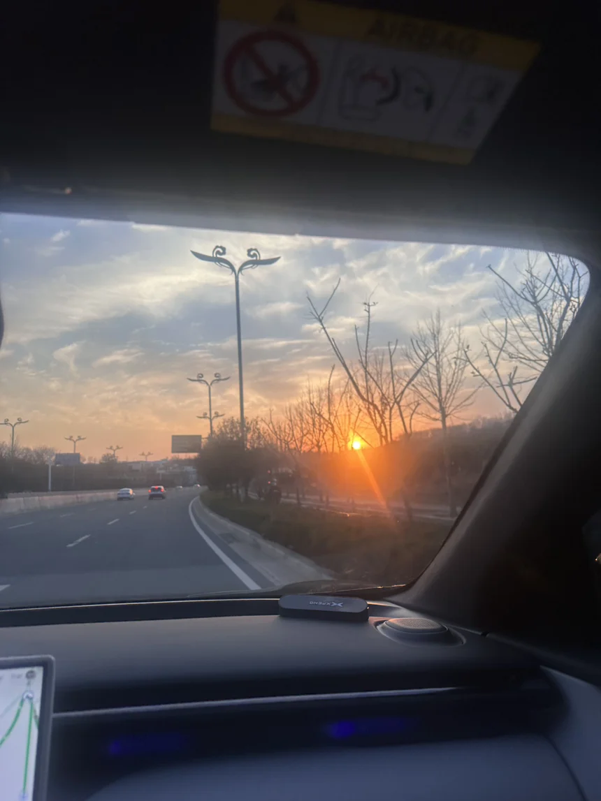 迎着夕阳出发,穿过高速,看着仪表盘上的数据一路跳,安全感直接拉满。