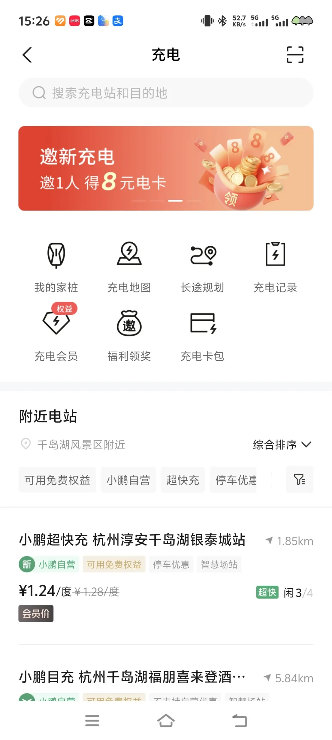 再说下续航和充电,我开的是G7 702Ultra,到达后又玩了两天,临走时候去充电,还剩了23%,非常安心。在千岛湖银泰半个小时充满,其实如果只冲到90%的话,20分钟就够,反正那天不赶时间,又有免费奶,就多留点余量了。这里也要夸一下窝棚的自建桩,前两年来的时候,还是只能在桐庐那边冲,现在千岛湖已经有三个小鹏超充点了,而且分布在不同湖区,不管你住哪边的湖区,都能比较方便的补能。