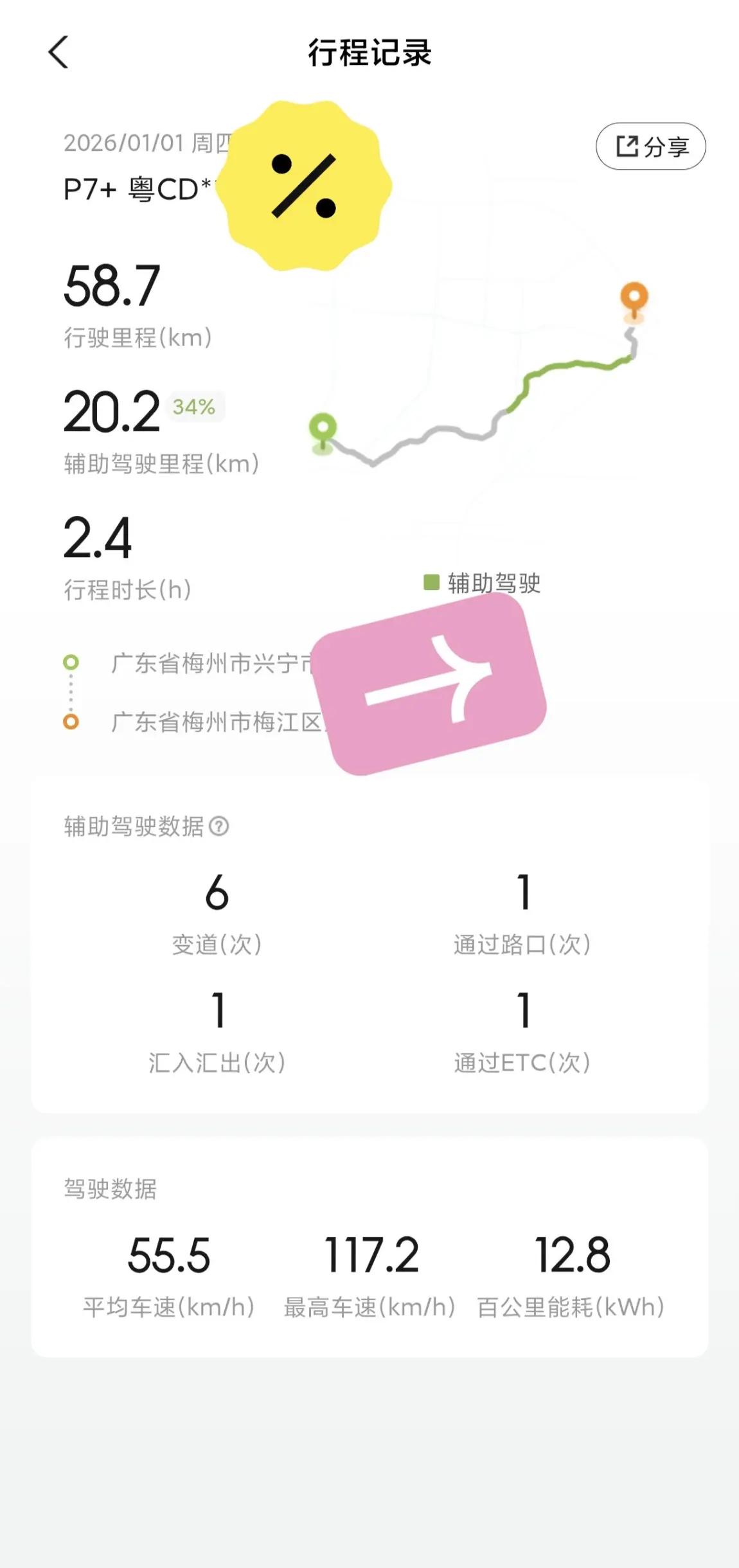 新的一年,希望能开着我的小鹏p7+去更多更远的地方!这是一次完美的新年首行,也祝愿鹏友们新的一年,续航长,能耗低,旅途愉快!