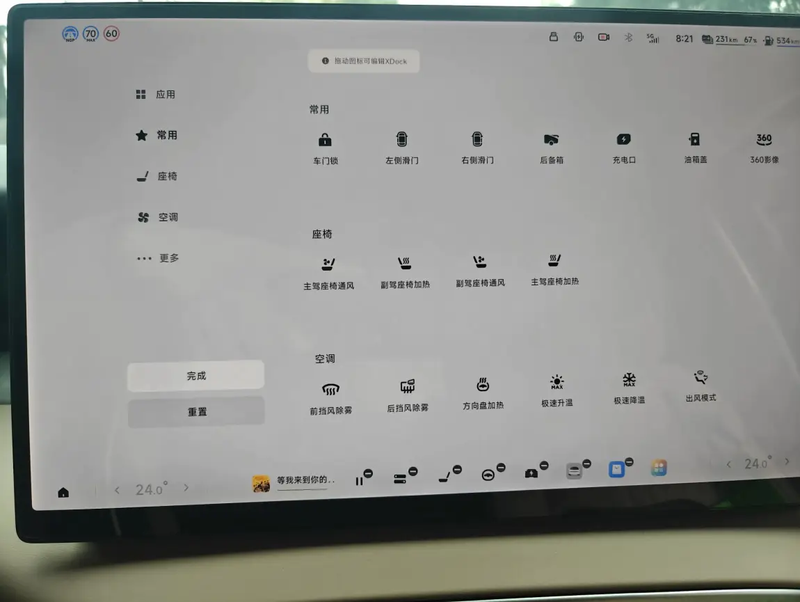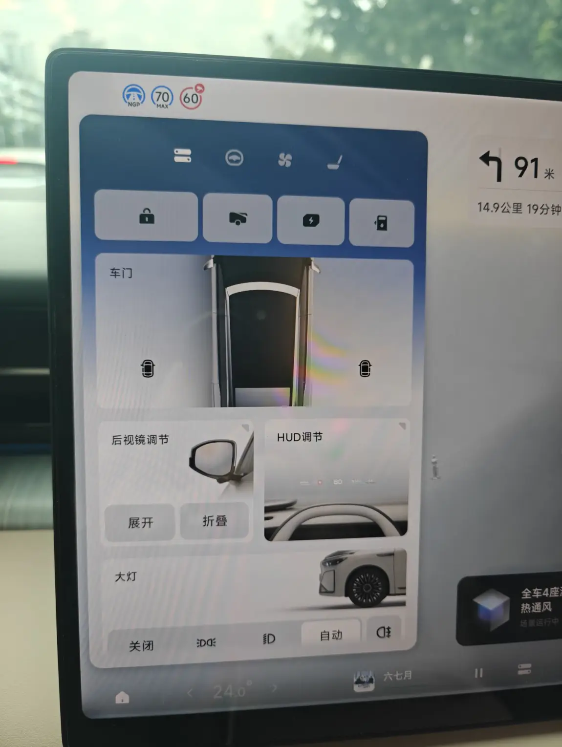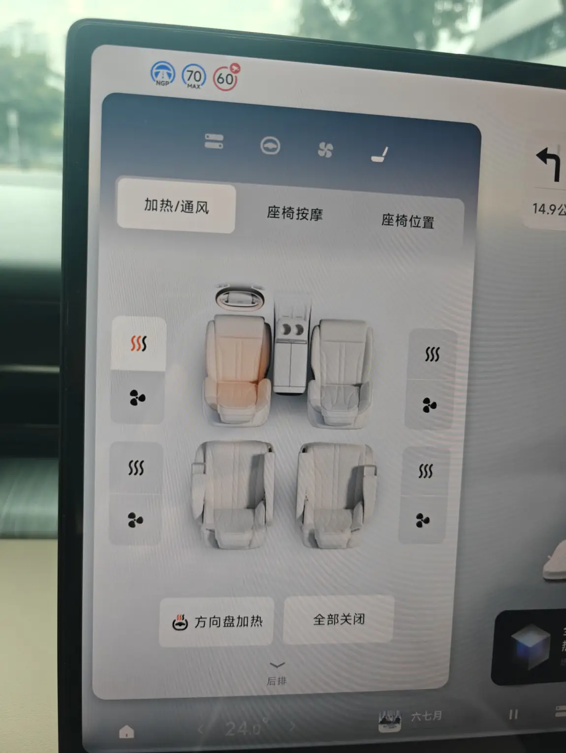 座椅菜单,位置调整,按摩,通风,加热,方向盘加热等等
