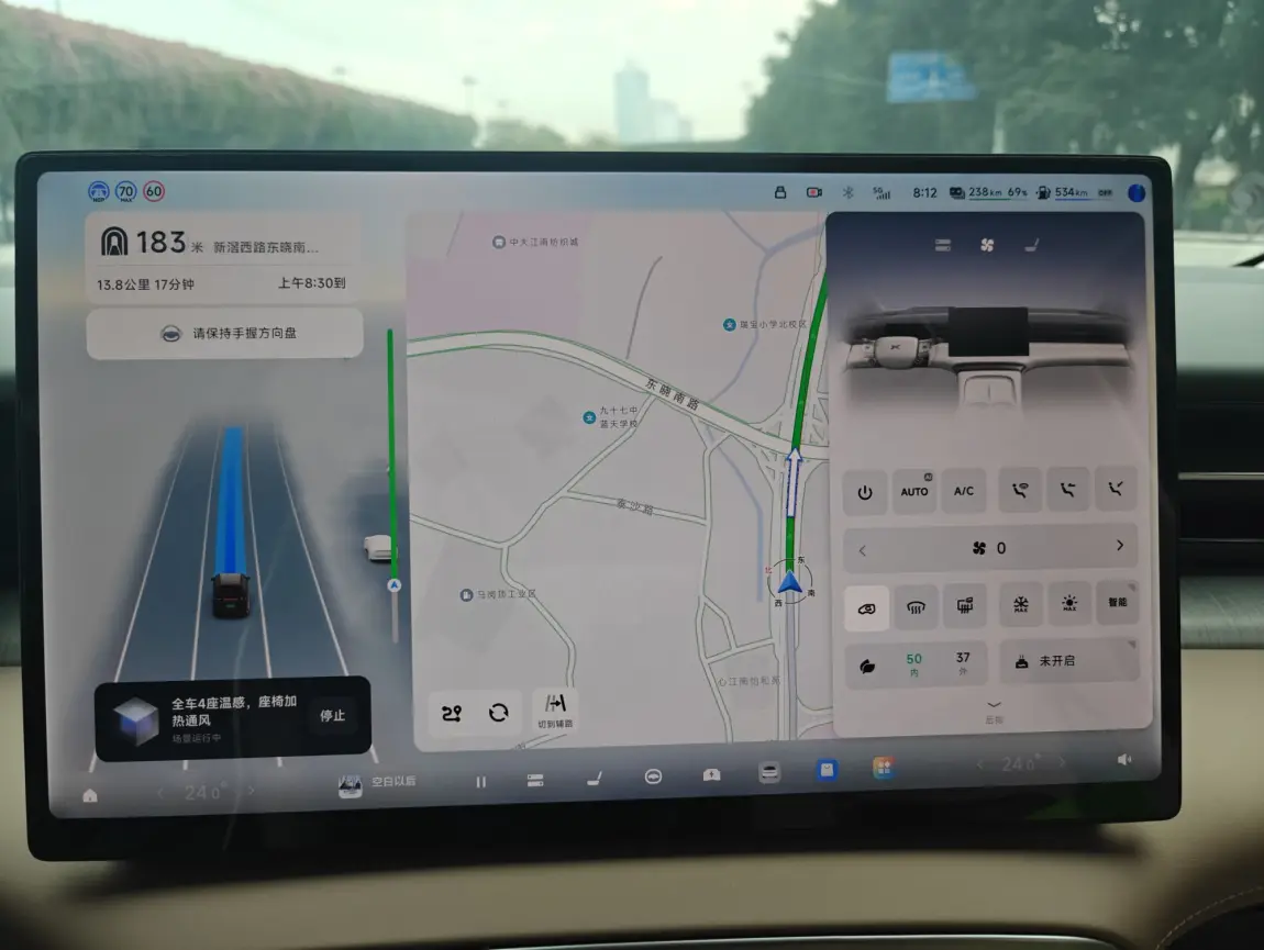✅界面焕新,突出车道级导航个sr环境,地图显示在右侧,点地图可以打开大地图显示,sr缩小成一栏