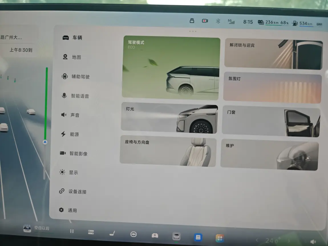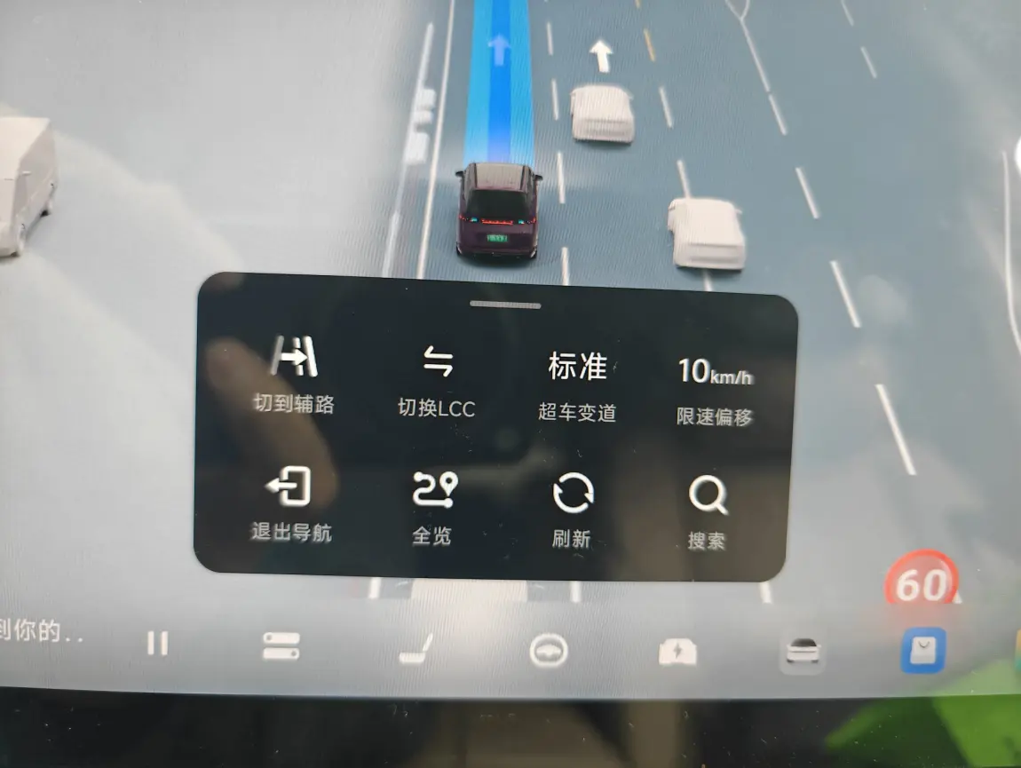 ✅智驾的快捷菜单设置,在主界面下方,点一下出现lcc,退出导航,超车风格,限速偏移等等