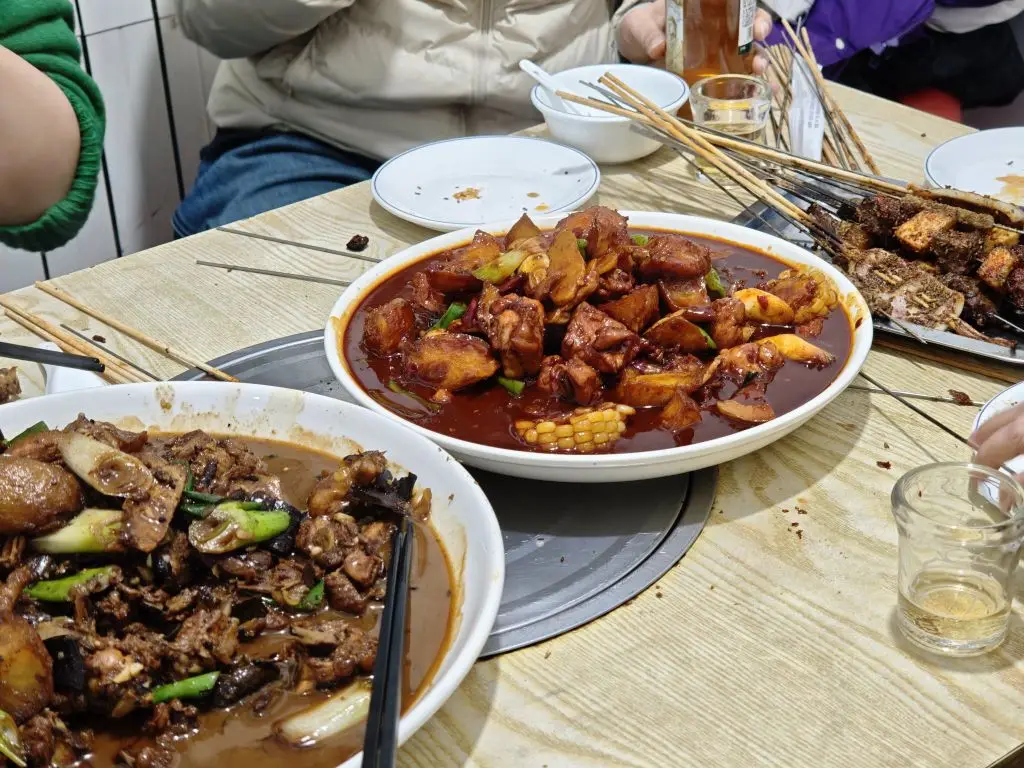 晚上来一份美味大盘鸡和烧烤,解解馋,犒劳一下旅途的疲惫