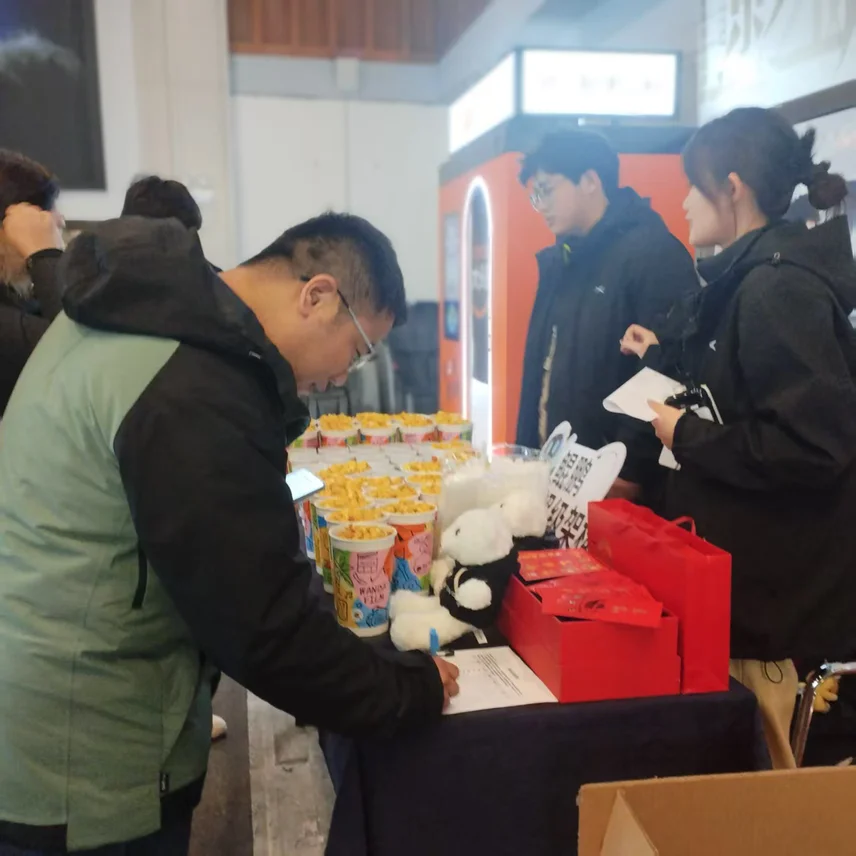 工作人员递上热乎乎的爆米花+可乐小食包,还有印着小鹏logo的伴手礼雏形(后来发现是惊喜大礼盒!),签到流程超顺畅,社恐也能轻松融入~