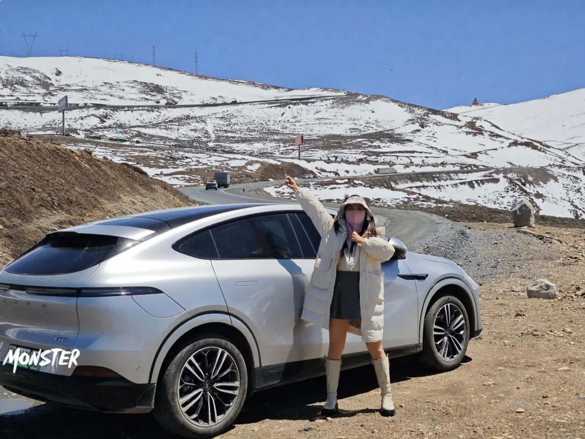 📸 图4:在雪山公路上停下来拍的,G6的银色车身在阳光下特别好看,和背后的雪山特别搭。当时就觉得,选这个颜色真是选对了。