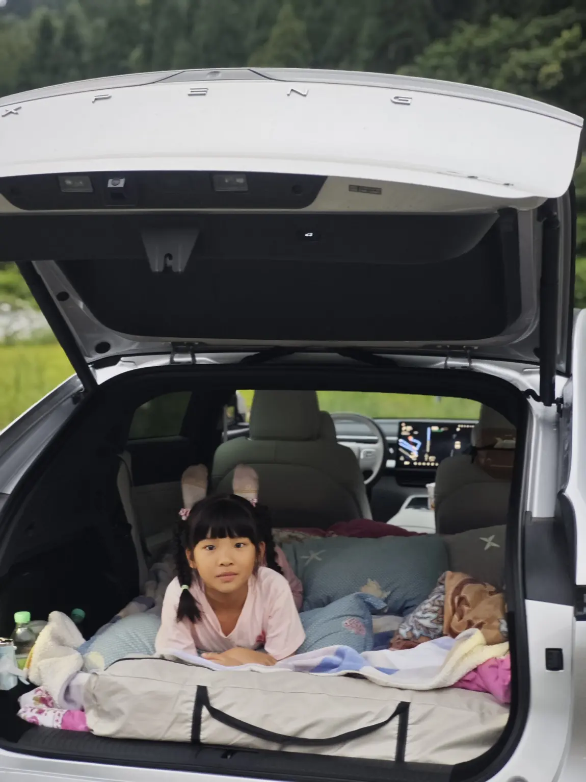 📸 图8:带娃露营的标配!把G6的后排放平,铺上床垫就是一张小床,孩子在后备箱里滚来滚去,玩累了直接睡,比搭帐篷省心多了。