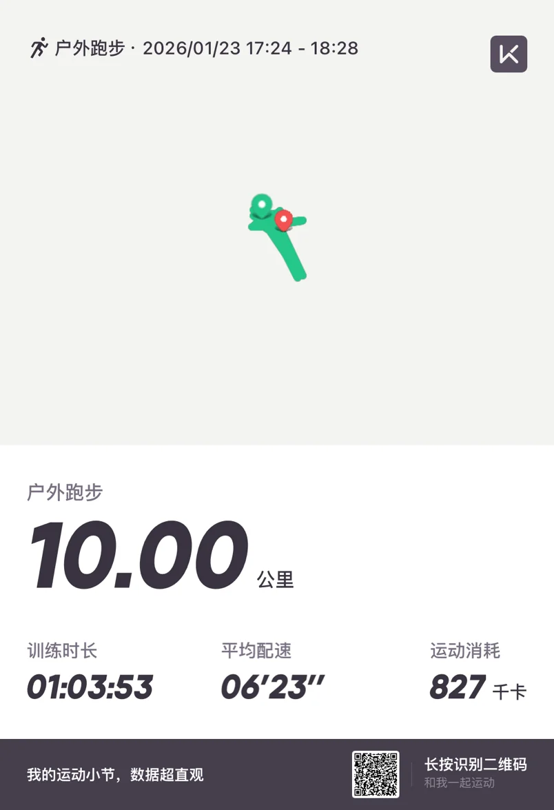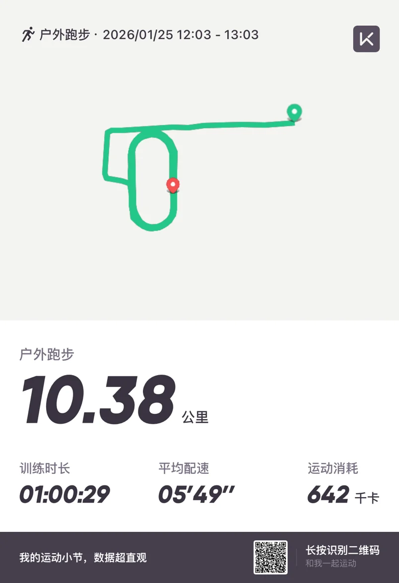 虽然没有开空调还是跑出了汗,一个小时多一些的时间,10公里轻松完成。