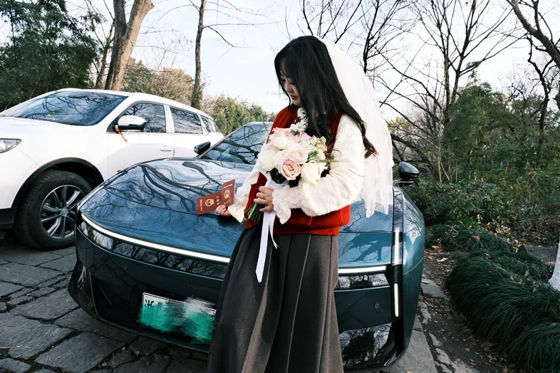 从民政局出来,拿着小红本站在车旁拍照,这一刻,小鹏不仅是我们的座驾,更是我们爱情的见证者,见证我们从此三餐四季。