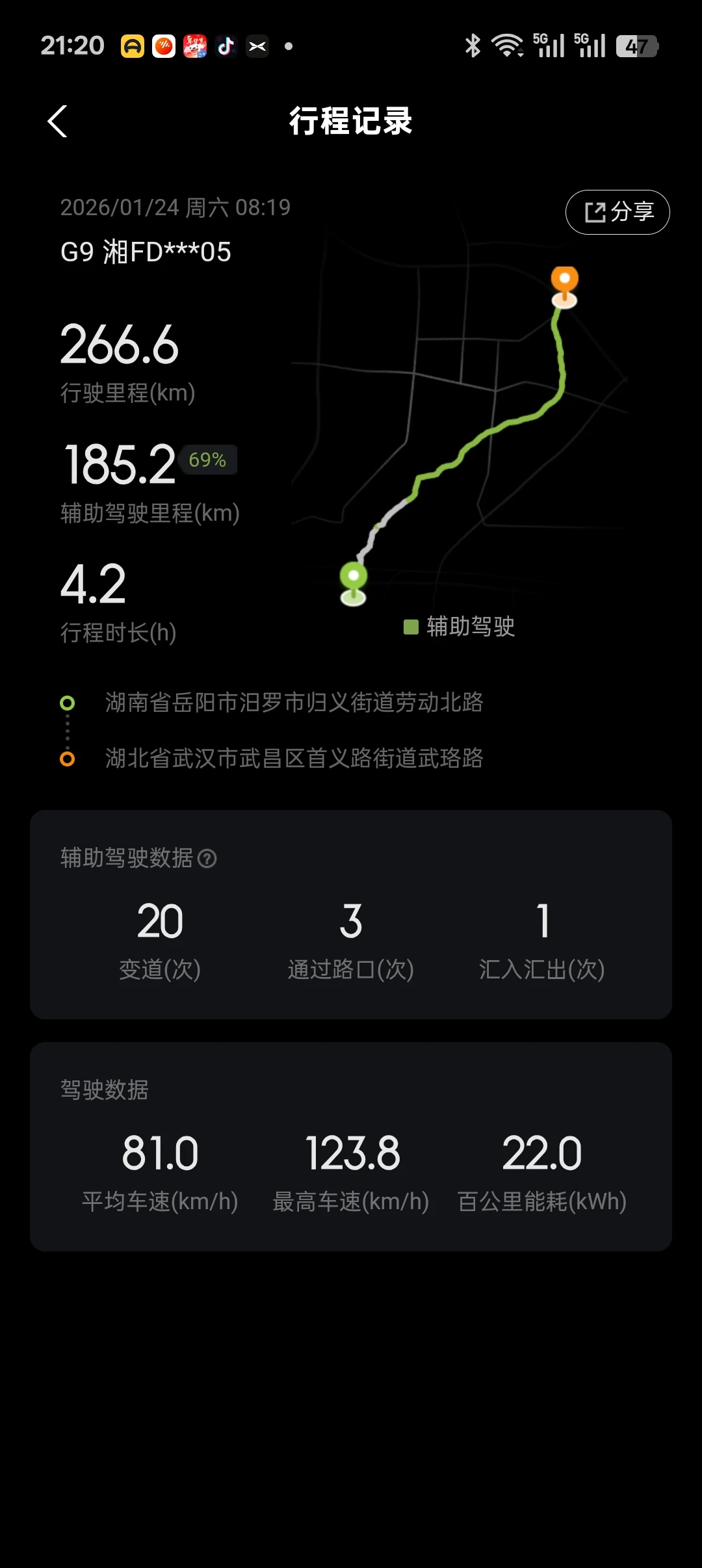 2025年8月份我把心心念念的小鹏G9盼到了家,现在用车已经半年多了!除了工作时间,一有空我就迫不及待地带着G9说走就走,跑了8000千多公里了,去了贵州、湖北、江西等地。我之前的三台油车没有一台在这么短的时间内跑过这么多路!因为开小鹏真让我身心愉悦,特别是跑长途,一点都不累。用智能辅助,之前用很紧张,到现在完全可以放心让其自由穿梭在复杂的马路上了。自己虽坐驾驶位 但更像坐高铁一样舒服、惬意!还有一点 充电很快哦!希望小鹏智能辅助越来越好用!!!!!!