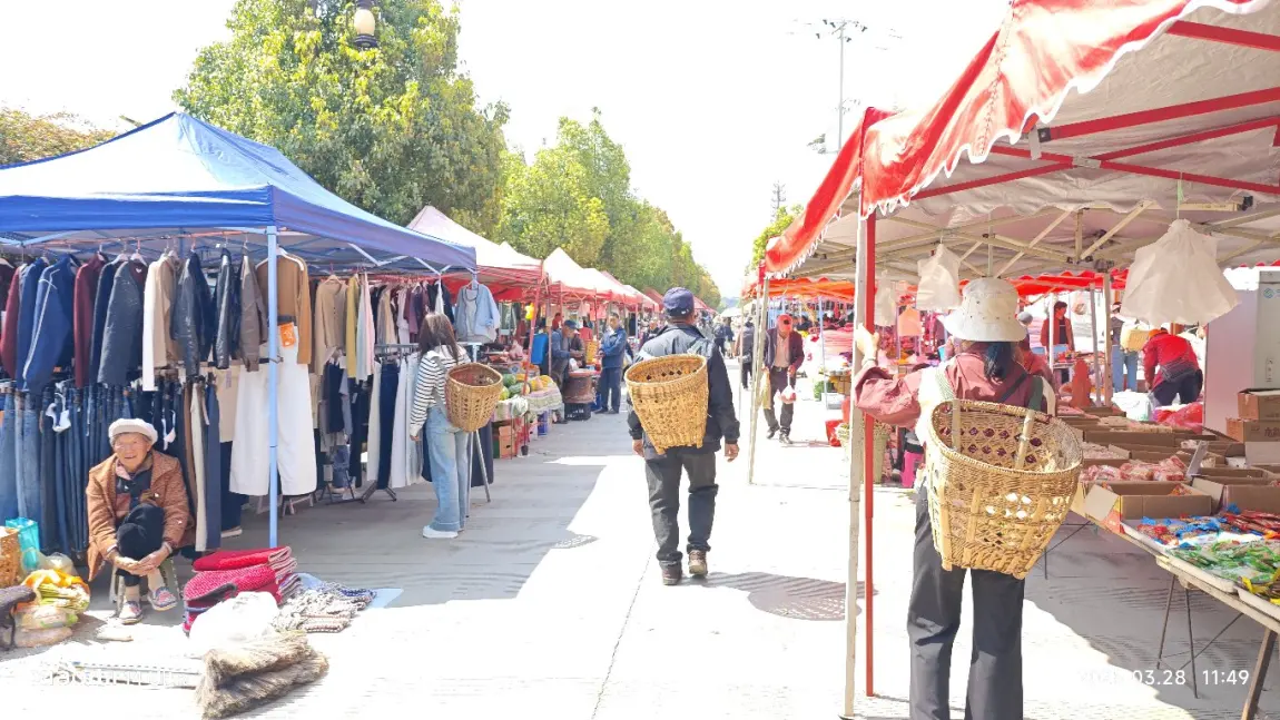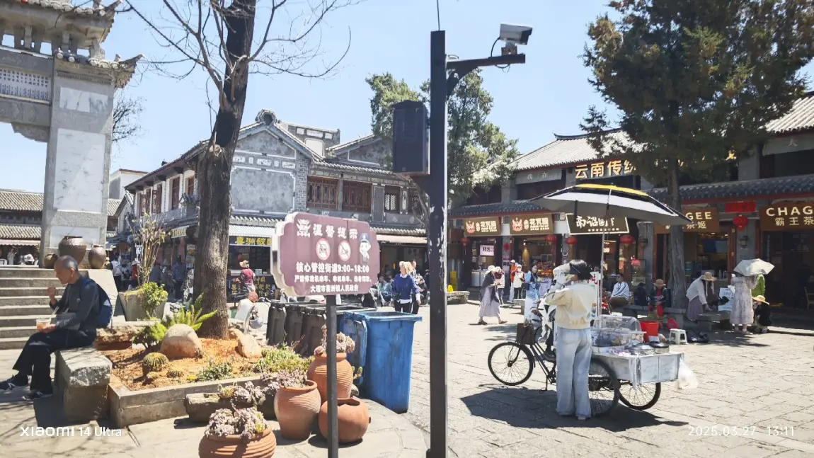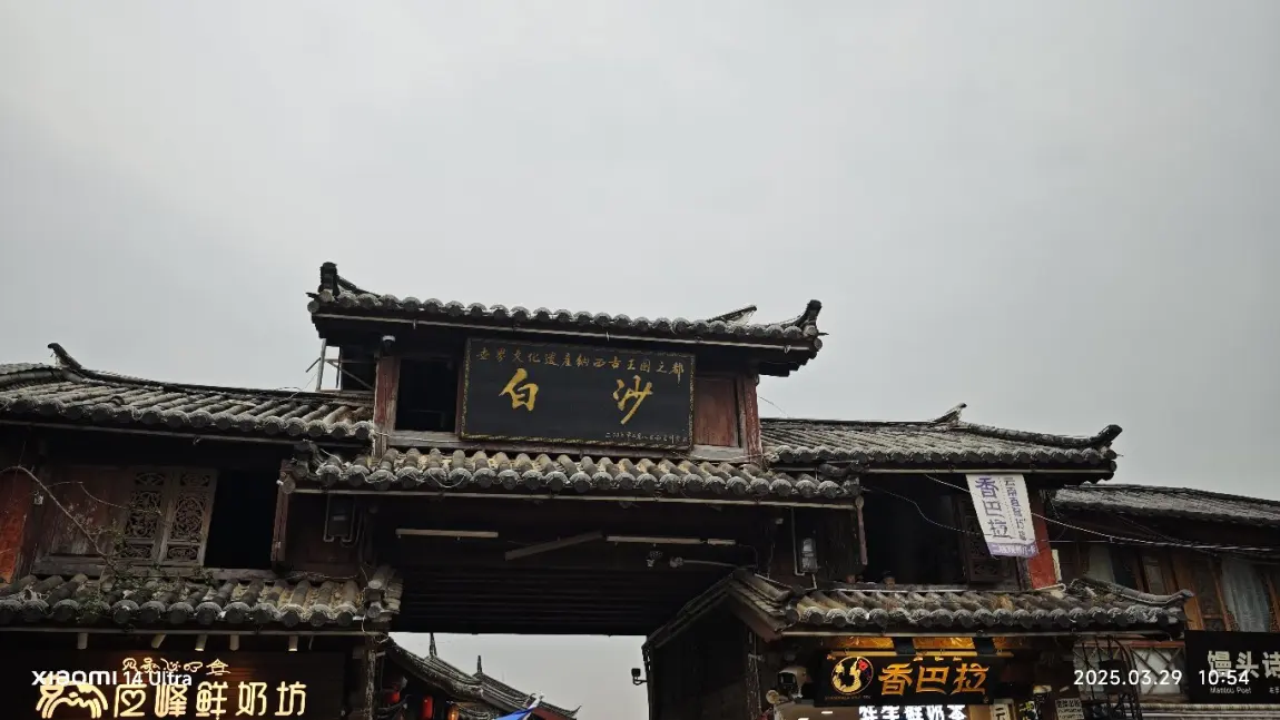 在大理古城向丽江出发,途径沙溪古镇,去有风的地方打卡,在停车场本地人会向你介绍小黄车服务,100元带你打卡电视剧.有风的地方电视取景地,因为我们到的时候是中午途中带我们去旅店吃饭,三菜一汤吃了100左右,感叹外省吃东西好便宜,十几块都有个炒青菜!期间刚好遇到赶集,然后就去感受赶集气氛,水果零食奶糖那些好吃不贵,逛完马上出发丽江古城