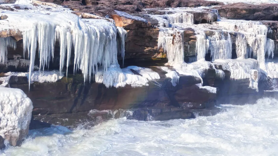 冬日的壶口,时间仿佛被冻结又奔腾不息。河水挟着巨大的冰凌轰鸣而下,撞击声如雷霆——那是“流凌”,是黄河拆解自己、又重组自己的骨骼。两岸岩壁悬垂着万千冰瀑,像是巨龙瞬间凝固的银甲,在阳光下折射出凛冽寒光。