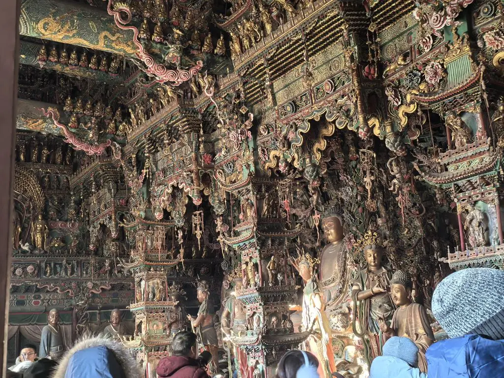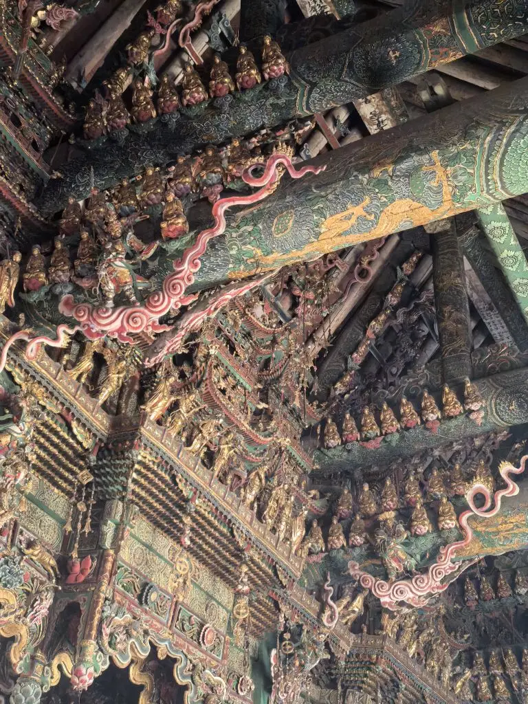跨入大殿门槛的那一刻,你便踏进了一个用泥土、色彩与信仰构筑的幻梦。近两千尊彩塑从梁间、壁上一涌而出,顷刻间淹没了你的视线——这不是静止的陈列,而是一个正在呼吸的、金碧辉煌的西天极乐世界。
