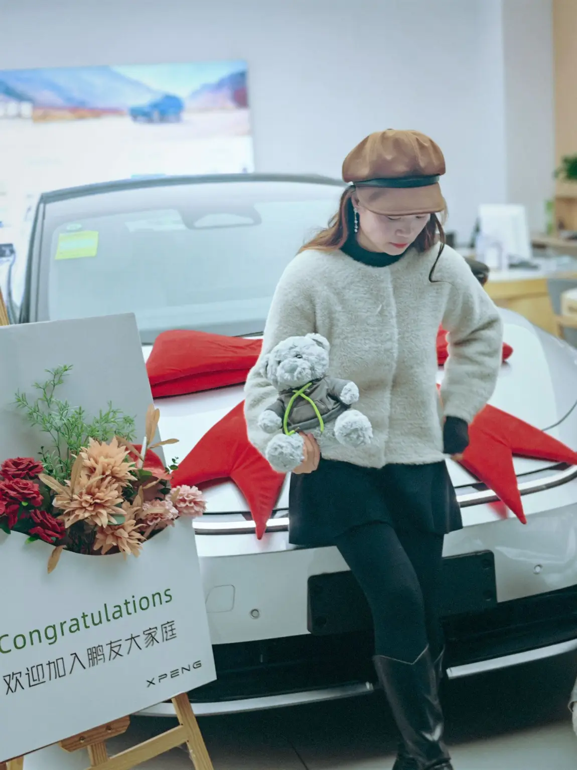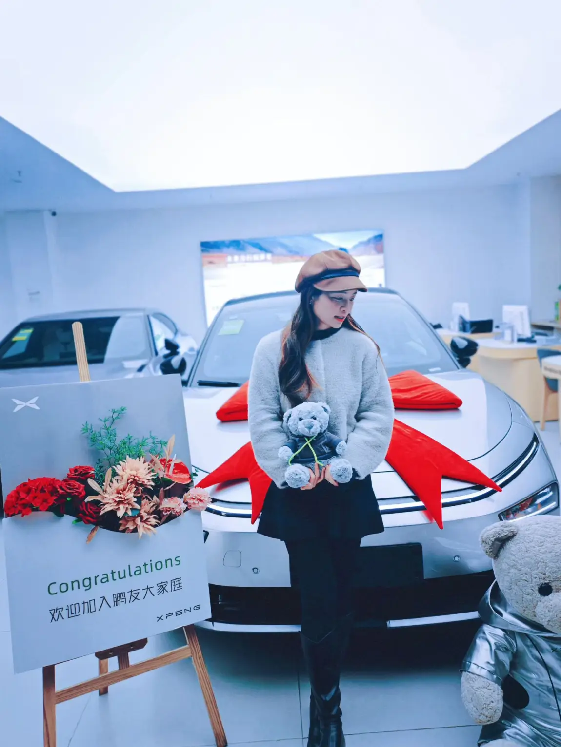 今天终于到了提车日,4S店布置得特别温馨,大大的红色蝴蝶结、专属的欢迎牌,还有可爱的小鹏熊玩偶,仪式感直接拉满。当销售把钥匙交到我手里的时候,那种期待已久的喜悦感真的无法用语言形容。