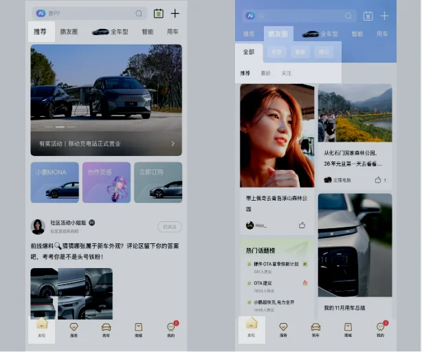 在小鹏社区,你可以收获:第一手小鹏资讯、生动有趣的鹏友故事、全面细致的用车技巧,查看推荐/鹏友圈是快速了解鹏友动态的好方式,建议每天闲暇之余多逛逛~