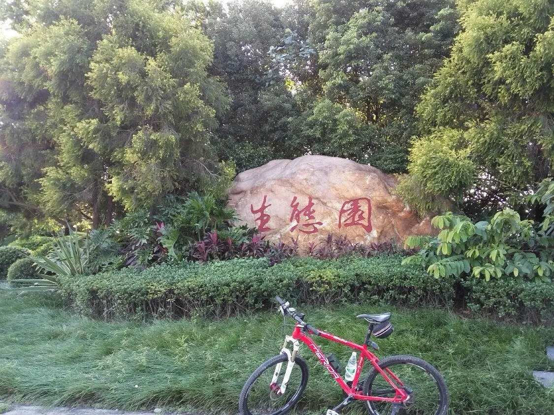 抵达生态园门口,我把G6停在专属车位,在旁边的租车点租一辆显眼的红色山地自行车车。看着爱车安静停在阳光下,我知道今天的快乐,已经提前就位。