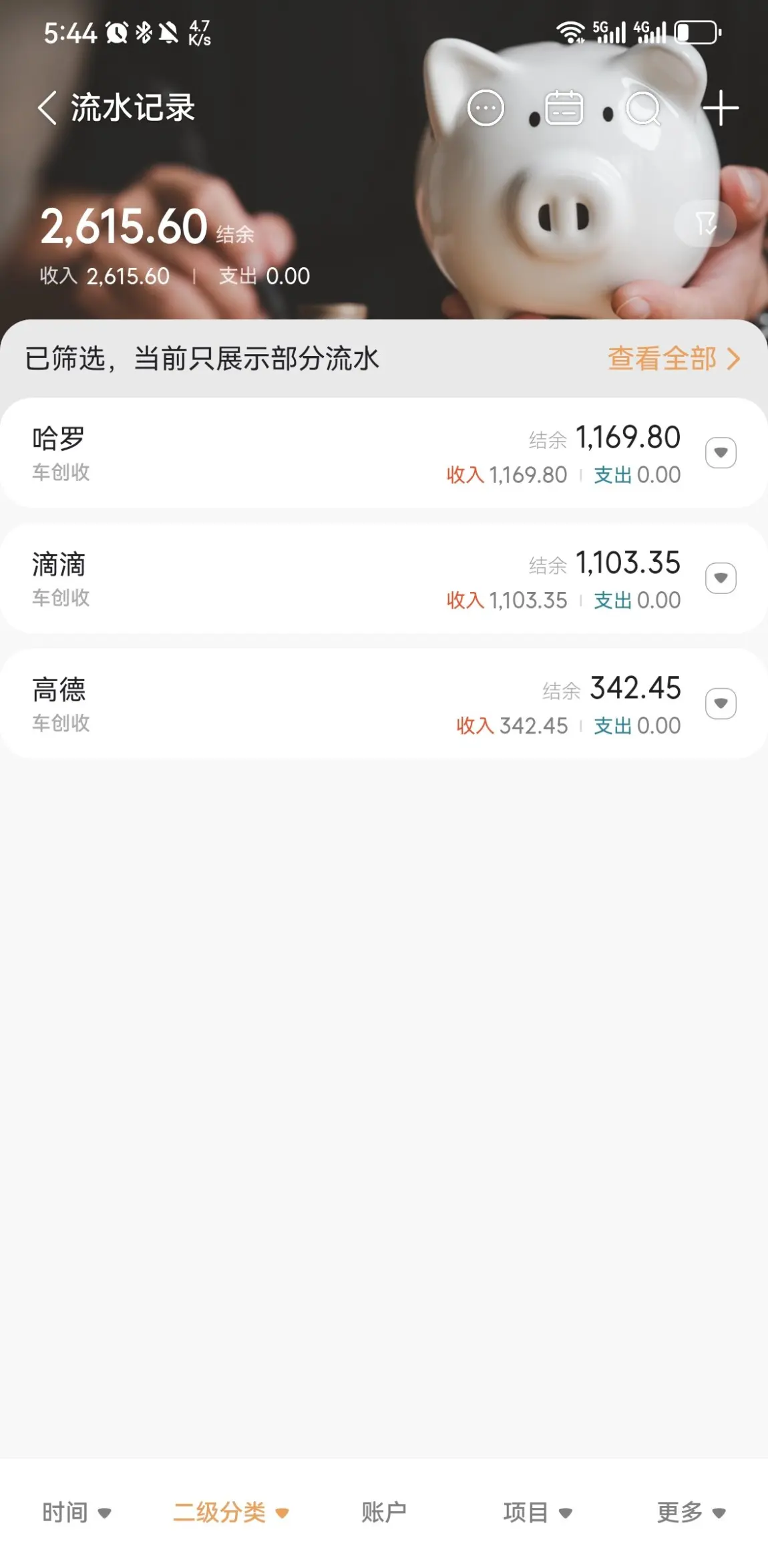 3️⃣收入:2615.6元,基本就是顺风车的收入了