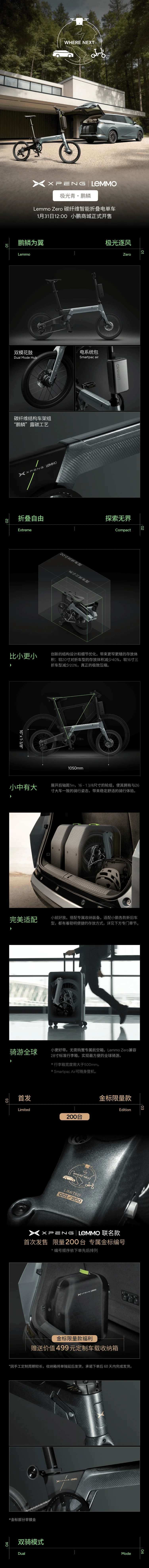 Lemmo Zreo 碳纤维智能折叠电单车,小鹏商城明日开售