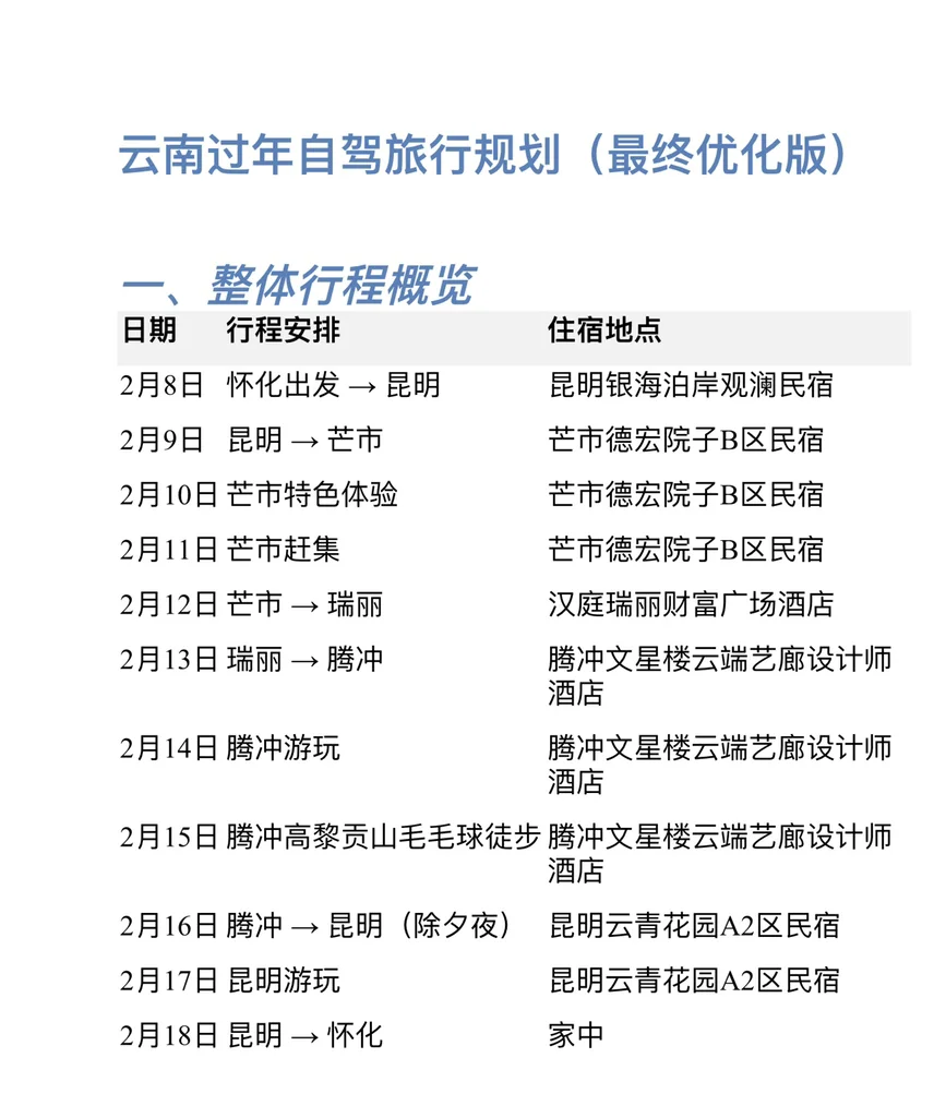 行程规划早已反复敲定:2026年2月6日从上海出发,一路向西奔赴怀化,接上丈母娘和侄女和姐姐后,全员集结向昆明进发,来回全程超5000公里。如今,车辆整备已全部就绪,羊毛毯铺得整齐,防踢垫与翻毛皮各就其位,后备箱里“逆子”的专属垫子与玩具摆放妥当,年货、行李也已列出清单,就等出发日来临。
