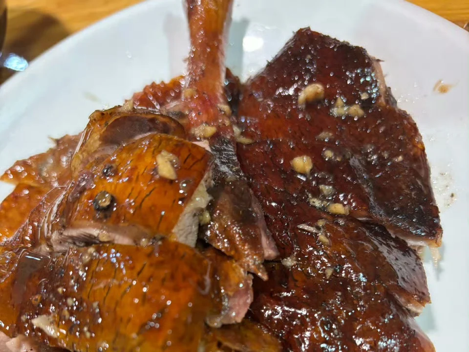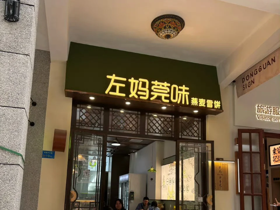 第一站直奔“左妈莞味”,这家开在骑楼里的小店,招牌燕麦雪饼和莞式烧鸭是必点。烧鸭皮脆肉嫩,蘸上酸梅酱酸甜解腻;燕麦雪饼外酥里糯,带着淡淡的麦香,搭配一碗热粥,就是老莞人最爱的早餐打开方式。
