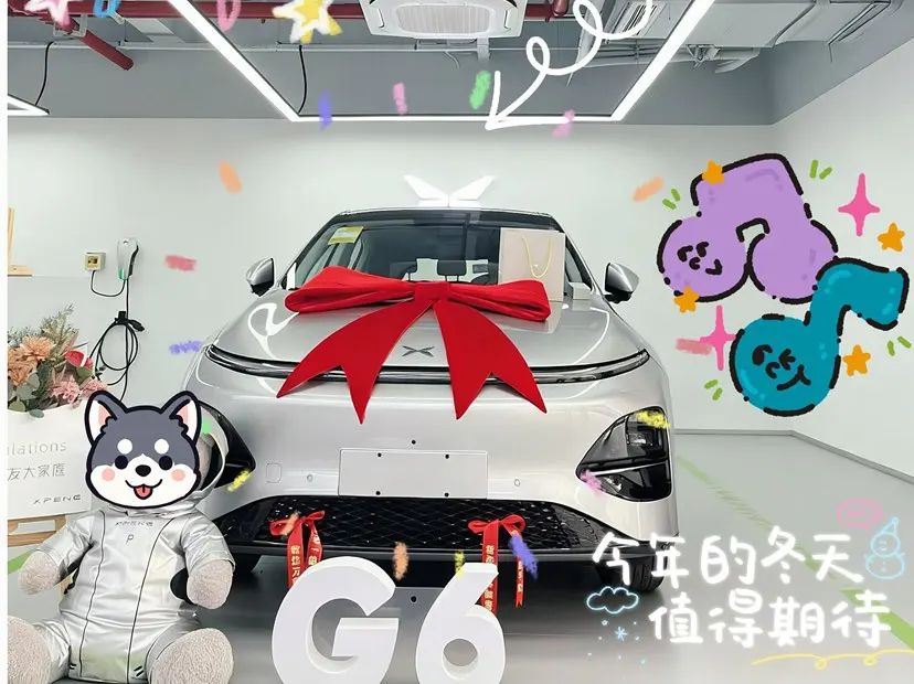 #我的提车作业# 那个寻常周末,和老公在商场闲逛时,被小鹏展厅里那辆G6吸引。不同于常见车型的方正造型,它的轿跑线条在灯光下格外流畅,而车尾那恰到好处的“小鸭尾”设计,更让我忍不住走近细看。展厅里停放的正是一台625科技版,