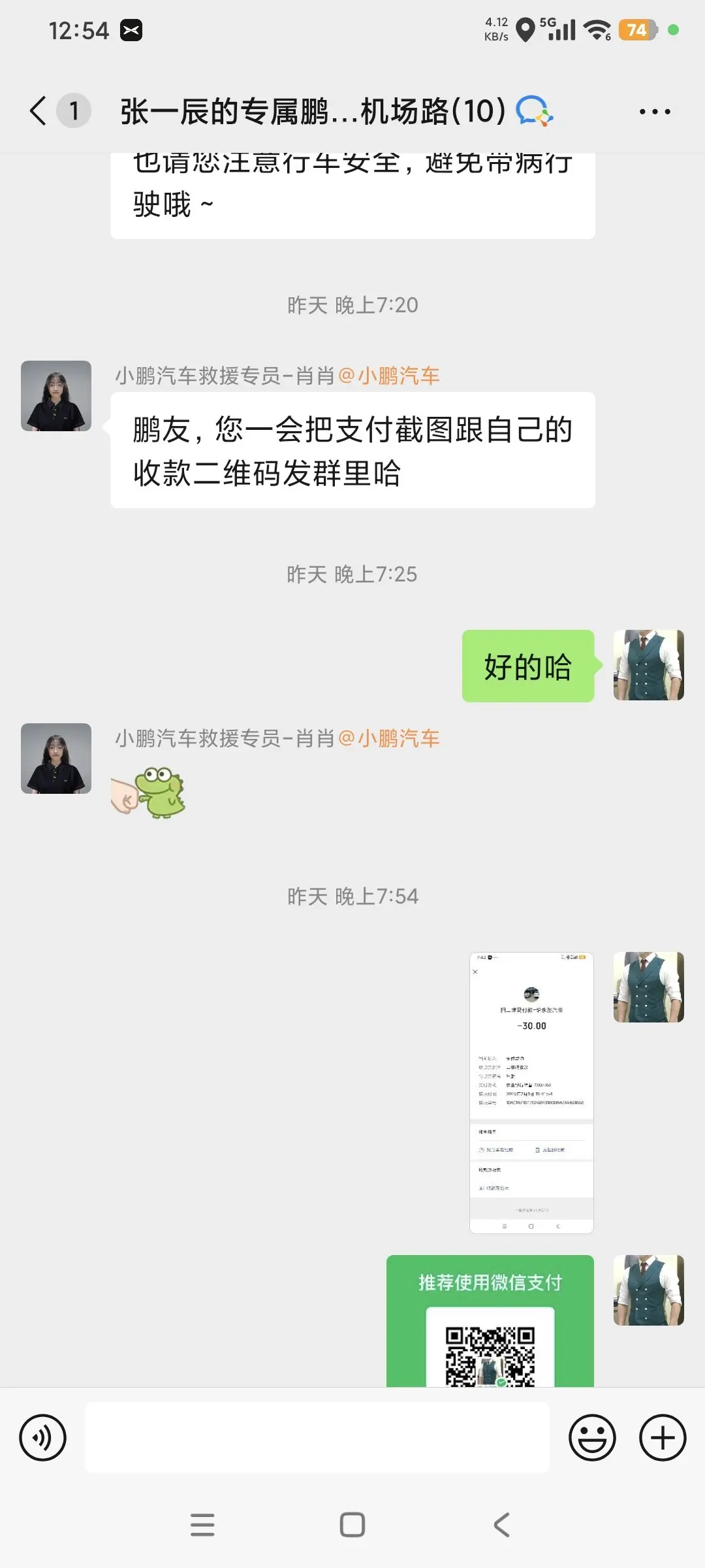 晚上我的小六6突发扎胎,联系小鹏售后秒响应,免费上门补胎虽排期久,工作人员立刻建议拖车方案,考虑我能开还贴心提醒自行到店保留凭证报销。